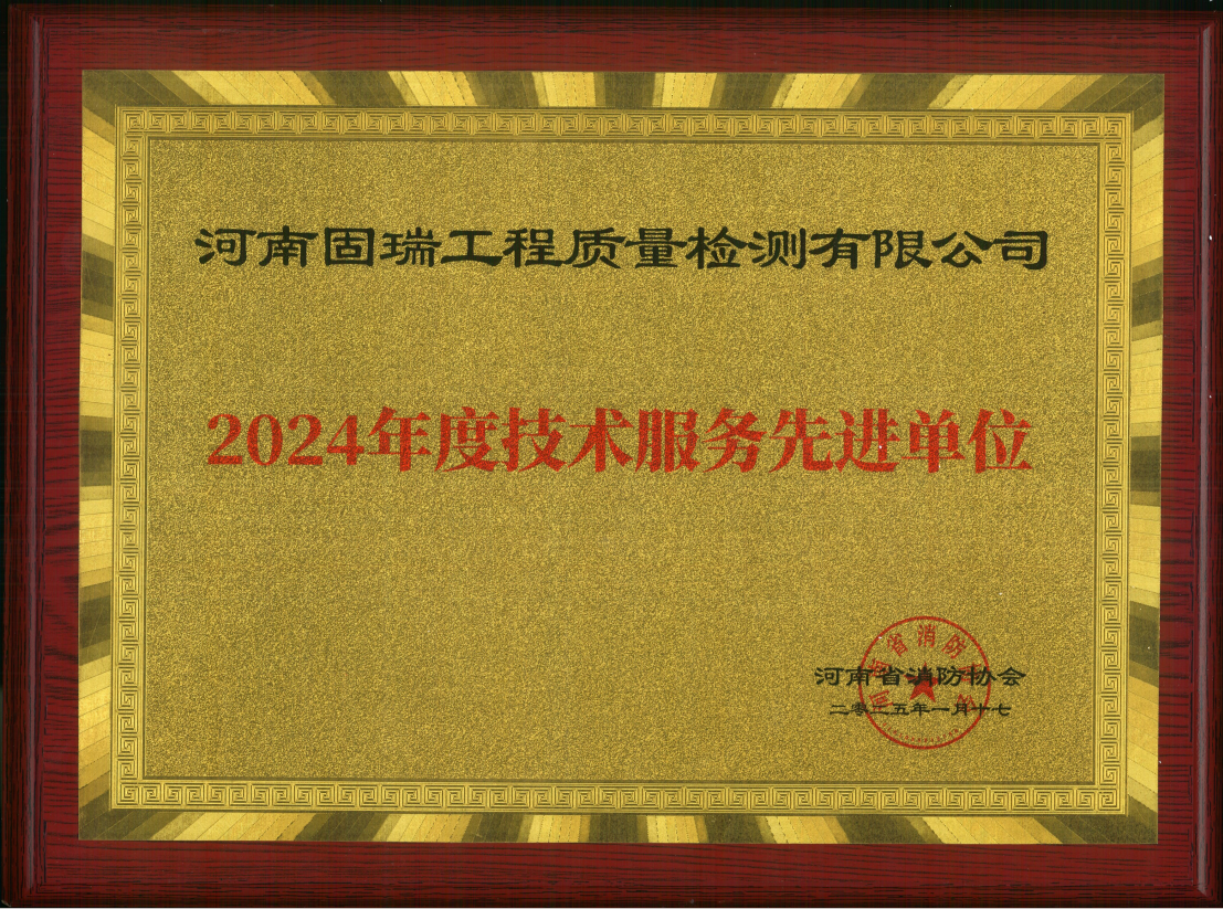 • 熱烈祝賀河南固瑞工程質量檢測有限公司榮獲河南省消防協(xié)會2024年度技術服務先進單位!!!